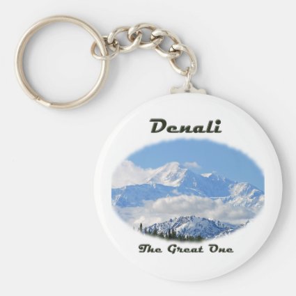 This is a clear photograph of Mt. McKinley in Alaska, with a beautiful blue sky in the background. The design also says 'Denali' as that is what the natives call their awesome mountain. Under the mountain photo, the text reads 'The Great One' which is the meaning of Denali in the Tanaina Indian dialect. The snowy mountain photo is cut-out into a feathered oval shape. There are many other products with this design, just click on 'store' above.
